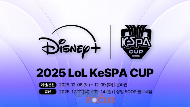 한국e스포츠협회(이하 협회)는 디즈니+가 단독 중계하는 국내 유일의 리그 오브 레전드(이하 LoL) 단기 컵대회 ‘2025 LoL KeSPA CUP’이 오는 12월 6일(토) 개막한다고 19일(수) 밝혔다.