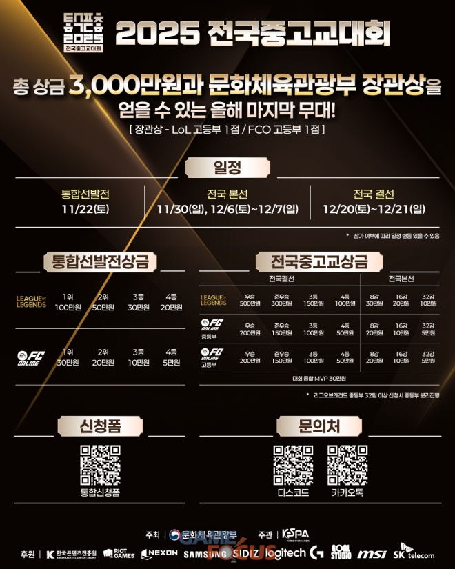 한편 2025 중고교대회는 문화체육관광부가 주최하고, 한국e스포츠협회가 주관하며, 한국콘텐츠진흥원, 라이엇 게임즈, 넥슨코리아, 삼성전자, 시디즈, 로지텍, 골스튜디오, MSI, SK텔레콤이 후원한다.
