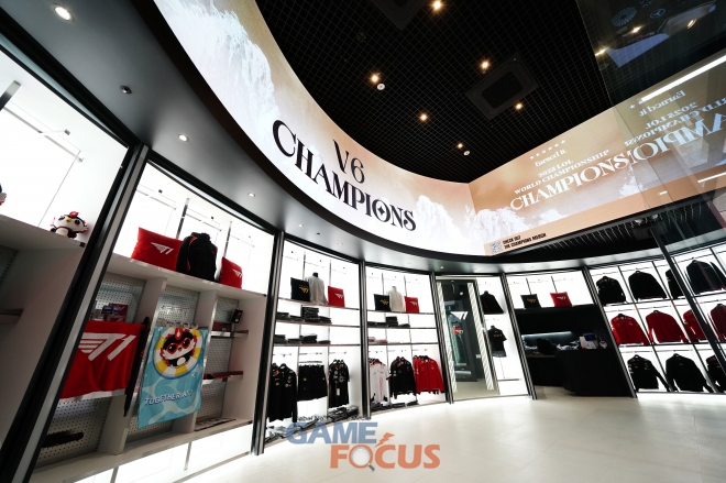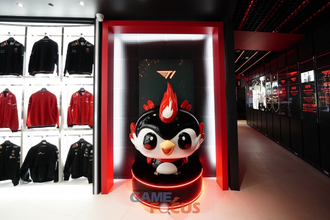홍대점이 직선적이고 개방된 구조였다면, 부산점은 곡선의 흐름을 따라 자연스럽게 공간을 탐험하는 즐거움을 강조한 원형 구조로 설계됐다. 핵심 아이덴티티인 블랙과 레드를 기반으로 미래지향적 화이트 톤 조명과 소재를 더해, T1의 정통성과 혁신적 이미지를 동시에 구현했다.