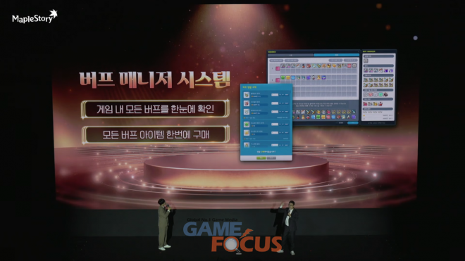 ‘크라운(CROWN)’ 개선사항 또한 공개했다. 인게임 보이스 챗 도입, 버프 아이템을 편하게 구매하고 확인할 수 있는 버프 매니저 시스템 추가, 영약 아이템의 기간 제한 삭제를 포함한 버프 아이템 개편, 소울을 보다 편하게 관리할 수 있는 소울 컬렉션 개편, 월드 메소 통합 등이 발표됐다.