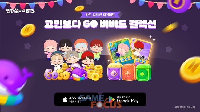 이번 업데이트는 '카드 컬렉션'의 신규 시즌을 시작으로, 겨울 시즌 분위기를 가득 담은 다양한 테마 콘텐츠로 구성됐다. 특히 방탄소년단의 '고민보다 GO 비비드' 테마를 기반으로 한 신규 카드가 새롭게 추가되었으며, 컬렉션을 완성하면 퍼즐 아이템과 함께 GO 문양의 특별 배지를 보상으로 획득할 수 있다.