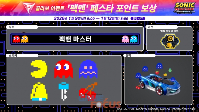세가퍼블리싱코리아(대표 사이토 고)는 현재 절찬 판매 중인 『소닉 레이싱 크로스월드』의 유료 DLC 제3탄 '팩맨 팩'을 2026년 1월 8일(목) 배포했다.