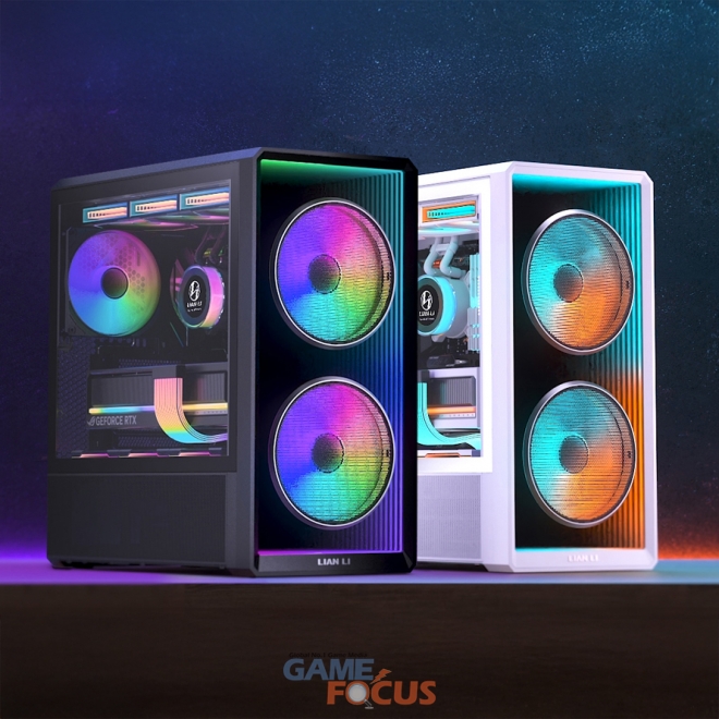 LANCOOL 217 INF는 전면 강화유리(Tempered Glass) 패널을 기반으로 인피니티 미러(Infinity Mirror) 효과를 강조한 외형이 핵심이다. 전면부는 정밀 가공된 강화유리 패널을 적용해 인피니티 미러 조명 표현을 또렷하게 유지하는 방향으로 설계됐으며, 측면 패널과 결합해 내부 튜닝 구성을 전면에 드러내는 빌드 콘셉트를 제시한다.