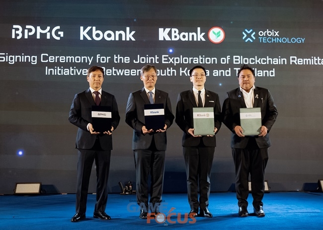블록체인 기업 비피엠지(BPMG, 대표 차지훈)가 인터넷전문은행 케이뱅크(Kbank), 태국 카시콘뱅크(KASIKORNBANK), 오빅스테크놀로지(Orbix Technology)와 해외송금 및 결제 분야 협력을 위한 업무협약(MOU)을 체결했다고 3일 밝혔다.