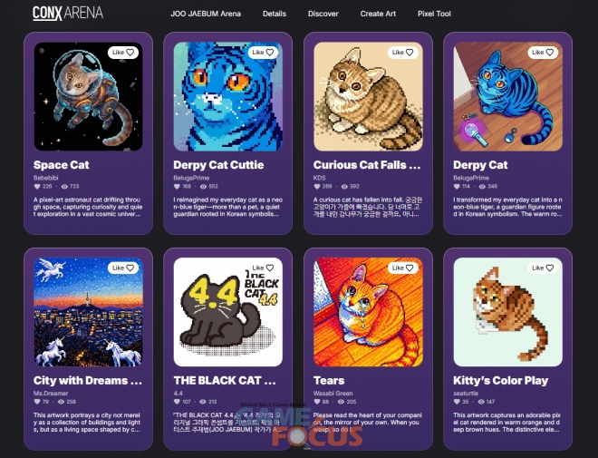 CONX 아레나의 두 번째 프로젝트 ‘주재범 아레나’는 CONX가 다양한 문화 산업으로 확장하는 상징적인 프로젝트다. AI를 활용한 2차 창작을 장려해 커뮤니티 참여를 활성화하고 CONX의 독창적인 보상 구조를 적용하는 데 초점을 맞췄다. 이번 프로젝트의 참가자들은 지정된 사진을 활용해 자신의 개성을 담은 픽셀 아트 아이디어를 제출했으며, 공모 기간 동안 총 344건의 아이디어가 접수되며 높은 관심을 기록했다.