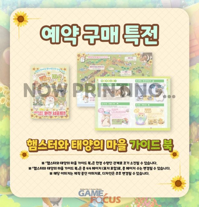※ 예약 구매 특전 『햄스터와 태양의 마을 가이드 북』은 한정 수량인 관계로 조기 소진될 수 있습니다.