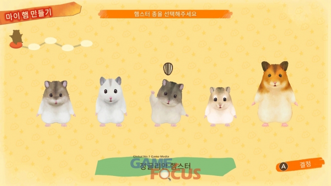 로보로브스키 햄스터 등 5종류의 햄스터에서 털 색과 눈 색, 액세서리 등을 조합하여, 플레이어의 분신이 될 귀여운 햄스터, ‘마이 햄’을 만들 수 있다. 게임에서는 트리톤 햄스터와 블랙벨리 햄스터 등 희귀한 종족도 등장한다.