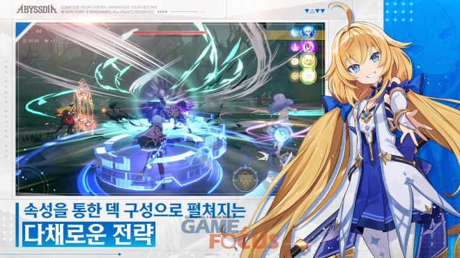 전투 파트 역시 김원주 PD가 강조한 ‘어비스디아’의 차별점 중 하나다. 4명의 캐릭터가 동시에 전장에 출전하는 4인 공투 방식으로 진행되며, 상황에 따라 캐릭터를 교체하며 싸우는 태그 액션이 핵심이다. 전투의 정점은 ‘하모닉 스트라이크’로, 전투 중 4명의 스킬을 한 번씩 사용해 4체인을 완성하면 파티의 호흡이 폭발하며 궁극의 순간을 연출한다.