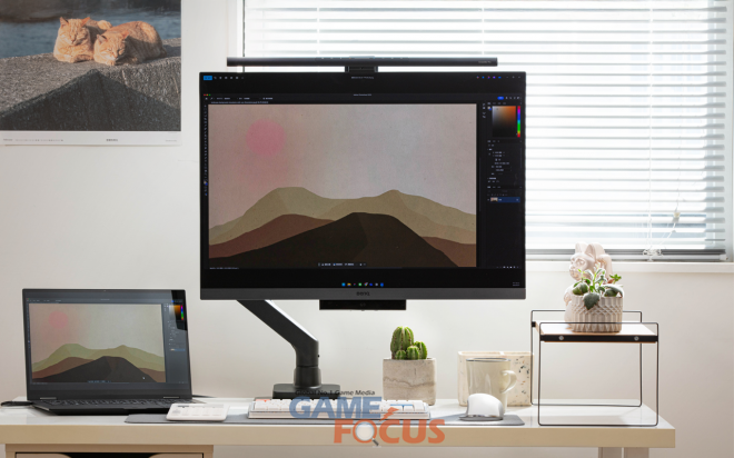특히 고중량 모니터일수록 작은 흔들림이나 처짐 없이 정확한 위치를 유지하는 것이 중요하다. 벤큐 에르고암은 가스 스프링 기반 설계를 통해 화면 기울기 +50도에서 -20도, 높이 22cm에서 47.5cm까지 부드럽고 안정적인 조절을 지원한다. 좌우 이동 범위는 48.2cm, 최대 확장 거리는 56.8cm로, 책상 깊이나 작업 동선에 맞춰 모니터를 전후·좌우로 유연하게 배치할 수 있도록 했다.