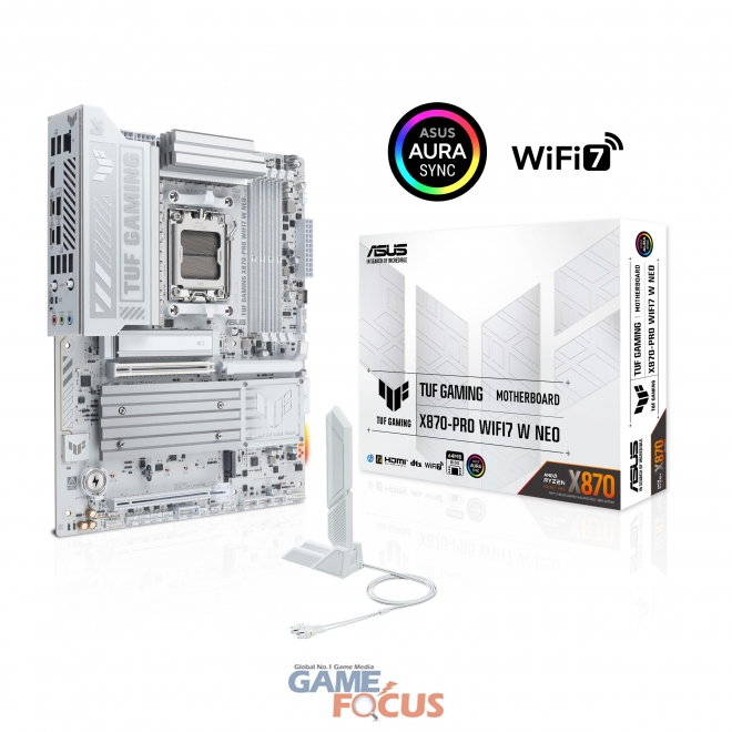TUF GAMING X870-PRO WIFI7 W NEO 역시 화이트 컬러 기반의 메인보드로 밀리터리 등급의 내구성과 안정적을 갖춘 메인보드이다. 16+2+1의 전원부에 NitroPath DRAM 기술이 적용되어 고성능 메모리뿐만 아니라 최대 9600+ MT/s의 강력한 오버클럭을 지원한다. 최대 40Gbps 전송 도의 USB 4 포트 2개와 30W PD 고속 충전을 지원하는 전면 USB 20Gbps Type-C를 제공해 폭넓은 연결성을 가지고 있다.