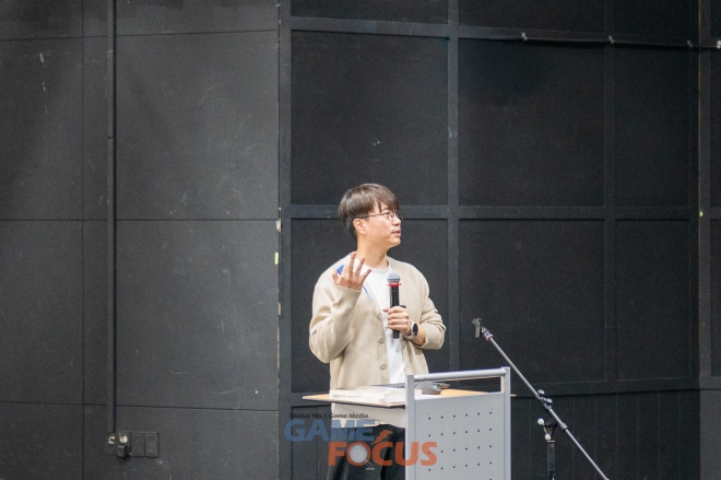 1부 워크숍은 옥토끼스튜디오의 최진규 작가가 <AI 시대의 창작 환경>을 주제로 발표하였다. 최진규 작가는 구글 바이브 코딩을 활용해 작가 특화형 웹툰 보조 AI 도구‘바나나 툰 스튜디오’를 자체 개발하여 작업 효율성과 작품 품질을 획기적으로 향상시킨 사례를 공유하였다. 그는 “AI가 단순히 작업 속도를 높이는 도구가 아니라, 작가 본연의 의도와 화풍을 반영하는 ‘제3의 동료’ 역할을 한다”라고 강조하였다. 실제로‘바나나 툰 스튜디오’를 활용하면 기존 수작업 대비 약 6.6배 빠른 작업이 가능해지며, 작품 품질은 오히려 120% 수준으로 향상되었다고 덧붙였다. 그는 “AI는 작가가 이야기 본질에 온전히 집중하도록 돕는 이상적인 협력자”라고 강조하며, AI를 통해 작가가 창작에만 몰두할 수 있는 환경을 만드는 것이 중요하다고 밝혔다.