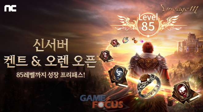 신서버 켄트, 오렌에서 사전예약 쿠폰을 등록하면 ‘오림의 목걸이(기간제)’, ‘세마의 반지(기간제)’가 제공된다. 해당 아이템들을 동시에 착용하면 ‘경험치 획득량 증가 +100%’ 효과를 추가로 누릴 수 있다. 쿠폰을 통해 획득 가능한 ‘아덴 기사단의 장비(이벤트)’는 이후 플레이를 통해 영웅 등급 ‘기사단의 장비(각인)’으로 업그레이드할 수 있다.