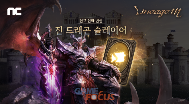 리니지M 3월 18일 신규 신화 변신 ‘진 드래곤 슬레이어’를 추가했다. ‘진 드래곤 슬레이어’ 변신 시 ▲공격 속도 180% ▲이동 속도 15% ▲시전 속도 20% ▲PVE 대미지 증가 3% ▲PVE 대미지 감소 3% ▲드래곤 추가 대미지 +40 ▲차징 시간 감소 25% ▲발동:슬레이어 퓨리 2%의 능력치를 획득한다. ‘발동:슬레이어 퓨리’는 신화 변신 최초의 광역 스킬이다.