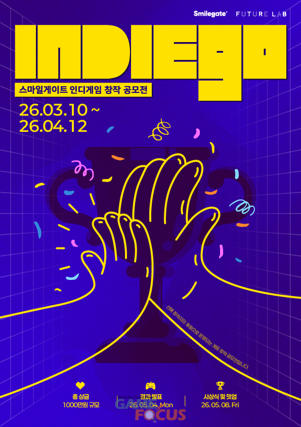 스마일게이트 퓨처랩(이사장 권혁빈)이 총상금 1,000만원 규모 인디게임 창작 공모전 ‘인디고(IndieGo)’의 참가자를 모집한다고 19일(목) 밝혔다.