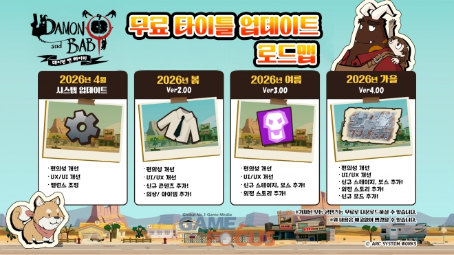 아크시스템웍스아시아 주식회사는 Nintendo Switch™, PlayStation®5, PlayStation®4, Steam®용 탑뷰 건 액션 어드벤처 『데이먼 앤 베이비 (DAMON and BABY)』가 오늘 2026년 3월 26일 (목) 출시되었다고 발표했다. 또한, 출시를 기념하는 트레일러 공개와 함께, 업데이트 로드맵과 개발자 메시지를 공개했다.