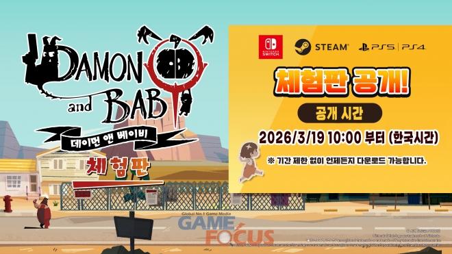 『데이먼 앤 베이비』의 Nintendo Switch™, PlayStation®5, PlayStation®4, Steam® 버전 체험판을 각 플랫폼 스토어를 통해 무료로 플레이할 수 있다. 플레이어는 자신의 플레이 스타일에 맞는 플랫폼을 통해 『데이먼 앤 베이비』의 세계를 체험할수 있다.