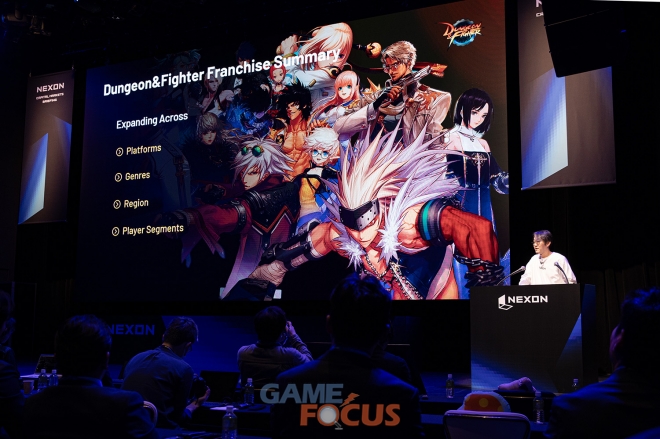 이정헌 대표는 지난 CMB 이후 넥슨의 주요 IP 프랜차이즈들이 걸어온 길을 솔직하게 평가하는 것으로 발표를 시작했다. '메이플스토리' 프랜차이즈는 한국 PC 원작의 견고한 실적 회복, '메이플스토리 월드'를 통한 지역 확장, 그리고 완전히 새로운 경험인 '메이플 키우기'에 힘입어 프랜차이즈 전체 매출이 전년 대비 43% 성장했으며, 매출의 약 40%가 한국이 아닌 글로벌에서 발생하고 있음을 조명했다. ‘던전앤파이터’ 프랜차이즈 또한 PC버전의 매출이 회복세를 보이며 전년 대비 30% 성장하며 굳건한 회복력을 입증했다고 덧붙였다.