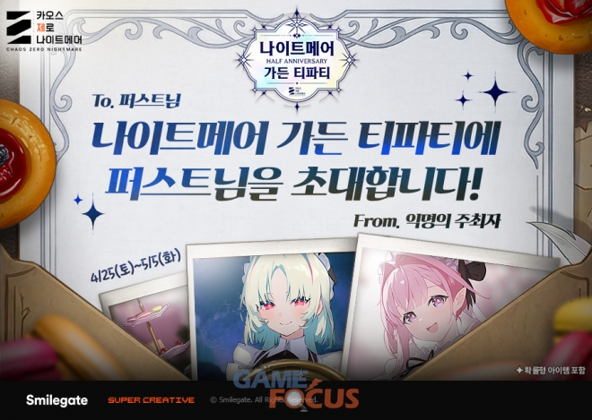스마일게이트가 서비스하고 슈퍼크리에이티브에서 개발한 다크 판타지 로그라이크 RPG(역할수행게임) ‘카오스 제로 나이트메어(이하 카제나)’가 론칭 반주년을 기념하는 ‘하프 애니버서리(Half Anniversary)’를 맞아 홍대에 오프라인 이벤트 카페를 오픈한다고 20일(월) 밝혔다.