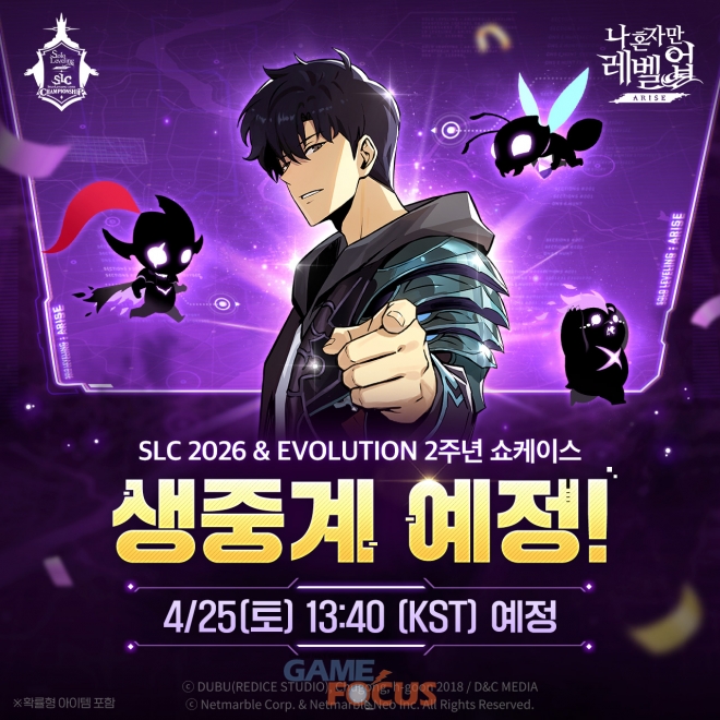 넷마블이 ‘나 혼자만 레벨업: 어라이즈’의 서비스 2주년을 기념한 오프라인 행사 ‘2주년 EVOLUTION’을 서울 잠실 DN콜로세움에서 25일 12시부터 진행한다.