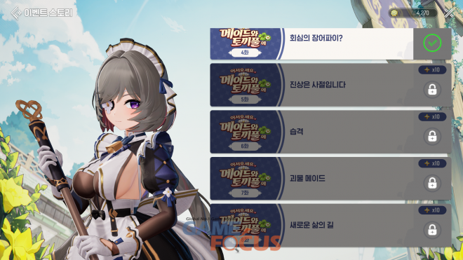 여담으로 메인 스토리는 아니지만 첫 픽업 캐릭터인 ‘에스데’의 이벤트 스토리는 너무 짧고 완성도도 부족했는데, 추후 등장하게 될 픽업 캐릭터들의 이벤트 스토리들은 강하게 보강을 해줄 필요가 있어 보인다. 캐릭터의 매력을 더욱 보여줄 수 있는 에피소드나 스토리를 보여줘야 할 콘텐츠임에도 기억에 남지 않는 대사 몇 줄로 지나가는 것이 너무 아쉽다.