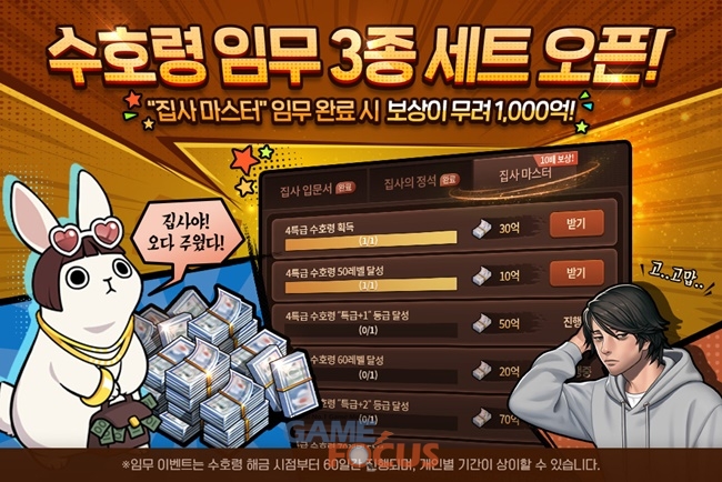 업데이트를 기념해 '집사 마스터 보상 강화 이벤트'도 함께 시작했다. 최초 접속으로 이벤트를 활성화한 후 60일 이내에 집사 마스터 임무를 달성하면 기본 보상의 10배인 1000억쩐을 지급한다. 60일 이후에는 보상이 감소되며, 이벤트 기간은 이용자별 해금 시점에 따라 개별적으로 적용된다.