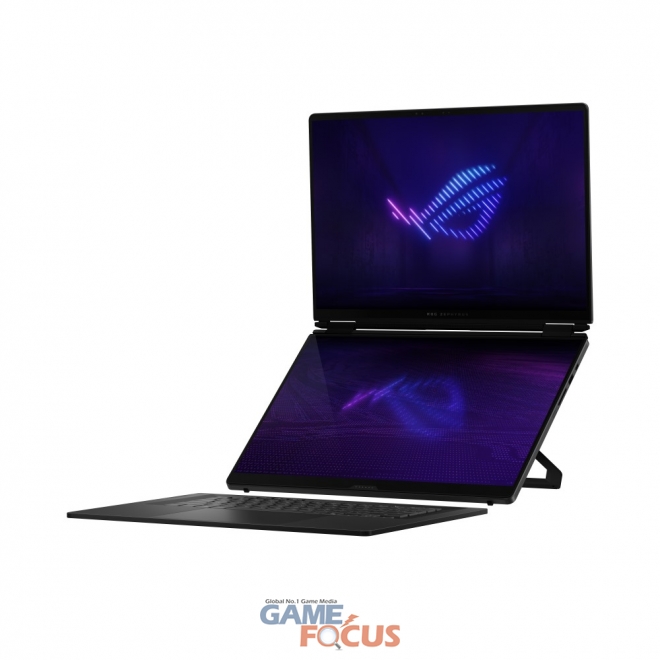 ROG 제피러스 듀오(GX651)은 세계 최초 16인치 듀얼 스크린 OLED 구조를 적용해 차별화된 사용 경험을 제공하는 플래그십 모델이다. 두 개의 16인치 3K ROG 네뷸라 HDR OLED 터치스크린을 탑재해 한층 넓고 유연한 작업 공간을 제공한다. 또한 120Hz 주사율과 0.2ms 응답속도, 최대 1,100니트 밝기, 베사 디스플레이 HDR 트루 블랙 1000 인증 및 DCI-P3 100% 색역을 지원해 생동감 넘치는 비주얼을 선사한다.