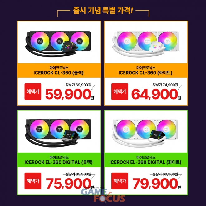한미마이크로닉스(대표: 강현민, 이하 마이크로닉스)는 일체형 수랭 쿨러 ‘ICEROCK CL-360’과 ‘ICEROCK EL-360 DIGITAL’을 공식 출시했다.