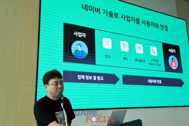 이건수 대표는 인공지능 전화 예약 기술 'AI Call(에이아이콜)'을 최초로 공개하고 현장에서 시연했다. 'AI Call'은 식당에 전화를 건 고객을 상대로 인간처럼 대화하며 예약을 잡아주는 인공지능(AI) 기술을 접목한 차세대 스마트 ARS로, ▲음성인식 ▲자연어처리 ▲음성 합성 기술 등 최고 수준의 네이버 AI 기술을 결합시켜 구현한 것이 특징이다.
