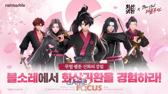 '화산귀환'은 동명의 웹소설을 원작으로 화산파 제자 '청명'이 마교 교주와의 대결에서 사망한 후, 100년 뒤 환생해 몰락한 화산파를 재건하는 과정을 그린 인기 무협 회귀물 웹툰이다. 무협을 소재로 한 '블레이드 & 소울 레볼루션'과의 높은 시너지를 바탕으로 이번 콜라보레이션이 성사됐다.