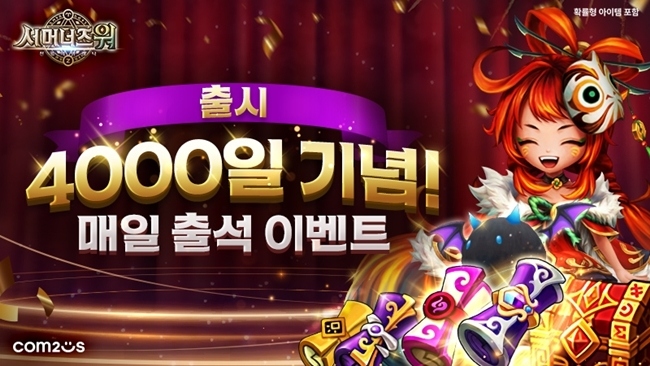 컴투스(대표 남재관)가 '서머너즈 워: 천공의 아레나(이하 서머너즈 워)' 출시 4000일을 앞두고 최대 4000개 아이템 선물을 받을 수 있는 대규모 이벤트를 실시...