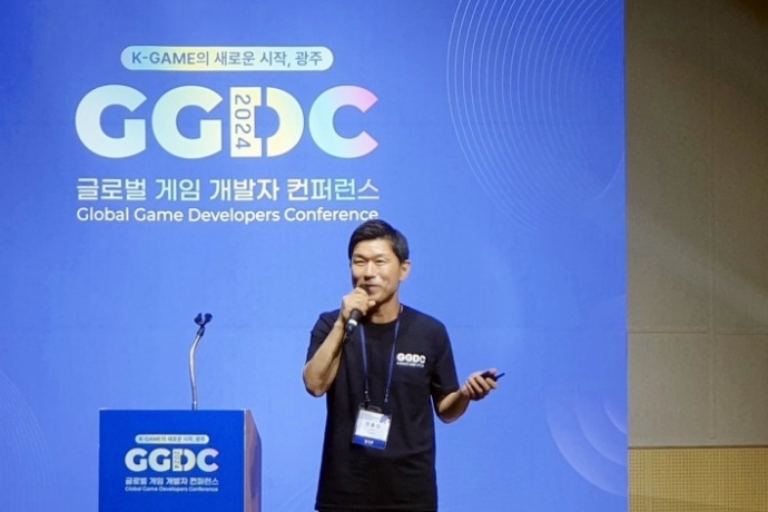 원스토어 전동진 대표가 11일 광주 전일빌딩245에서 개막한 글로벌 게임 개발자 컨퍼런스 기조강연자로 나서 컨퍼런스에 참석한 게임 개발자들에게 원스토어의 ...