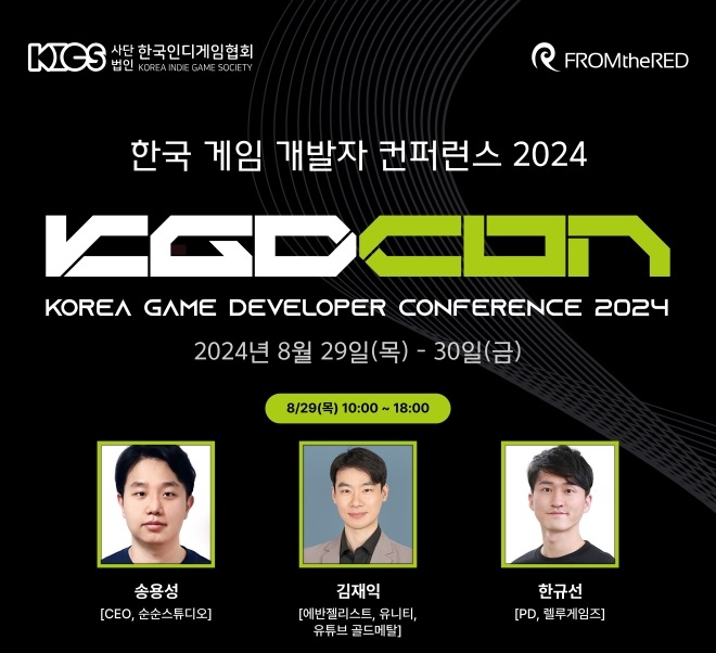 한국인디게임협회는 국내 최대의 규모로 한국 게임 개발자 컨퍼런스 (KGDCon 2024)를 오는 8월 29일, 30일 양일간 일산 킨텍스에서 개최한다고 밝혔다. ‘KGDCon...