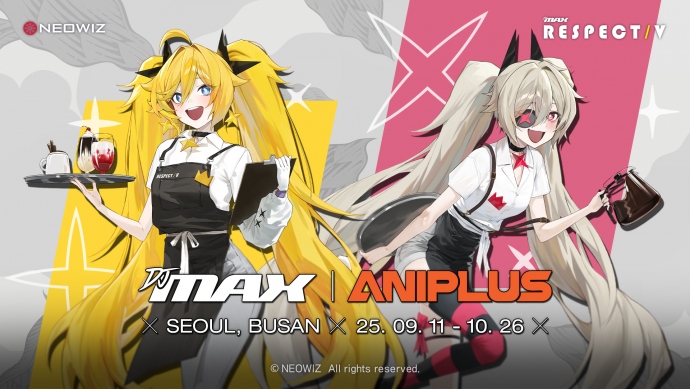 네오위즈의 리듬게임 '디제이맥스 리스펙트 V'와 애니플러스의 콜라보 카페가 11일 운영을 시작했다. 여기에 더해 많은 '디제이맥스' 이용자들이 기다려온 '아르...