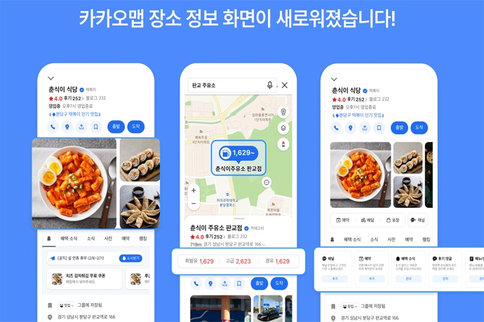 카카오(대표이사 정신아)의 위치 기반 라이프 플랫폼 카카오맵이 '장소상세' 서비스를 개편했다고 1일 밝혔다. 카카오맵 '장소상세'는 특정 장소에 대한 세부 정...