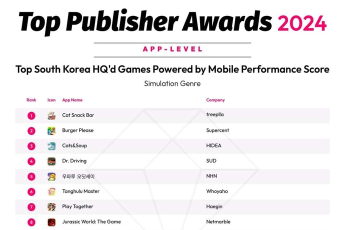 넵튠의 자회사 트리플라(주)(대표 허산)의 모바일게임 '고양이스낵바(Cat Snack Bar)'가 데이터 및 분석 플랫폼 데이터에이아이(data.ai)에서 발표한 '2024년 상...