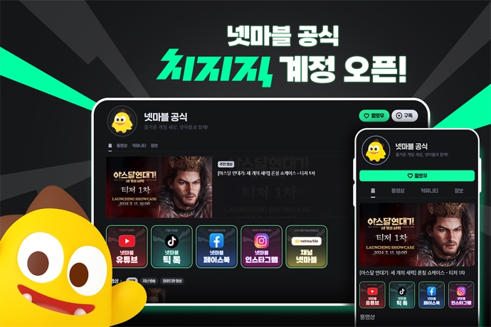 넷마블(대표 권영식, 김병규)은 네이버의 게임 스트리밍 서비스 '치지직'에 공식 채널을 개설했다고 14일 밝혔다. 지난해 12월 네이버가 공개한 '치지직'은 베타...