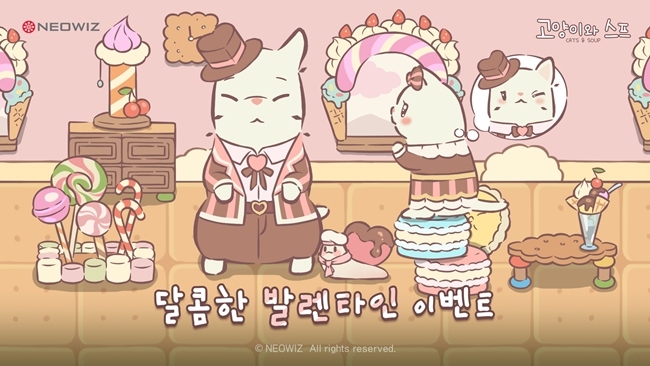네오위즈(공동대표 김승철, 배태근)가 자사가 서비스중인 모바일 힐링 방치형게임 '고양이와 스프(Cats & Soup)'에서 밸런타인데이 기념 테마 이벤트를 진행...