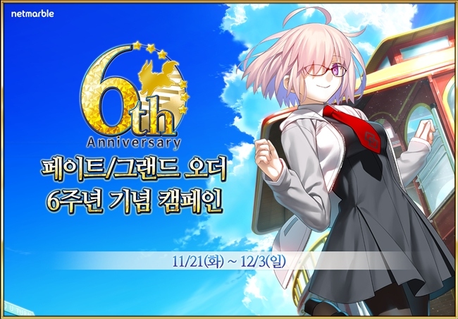 넷마블(대표 권영식, 도기욱)이 모바일 RPG '페이트/그랜드 오더' 출시 6주년을 기념한 캠페인을 12월 3일까지 실시한다. 넷마블은 6주년 캠페인의 일환으로 '청...