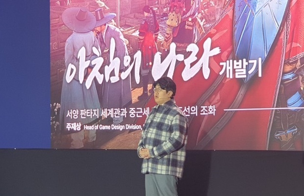 펄어비스 게임디자인실 주재상 실장이 지스타 컨퍼런스에서 '아침의 나라 개발기'라는 제목으로, '검은 사막'에 업데이트되어 세계적으로 많은 인기를 모은 '아...