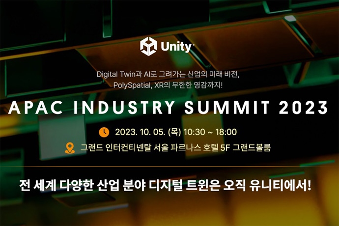 유니티 코리아 최초의 아시아·태평양(Asia & Pacific, 이하 APAC) 지역 통합 행사인 '유니티 APAC 인더스트리 서밋 2023(Unity APAC Industry Summit, 이하...