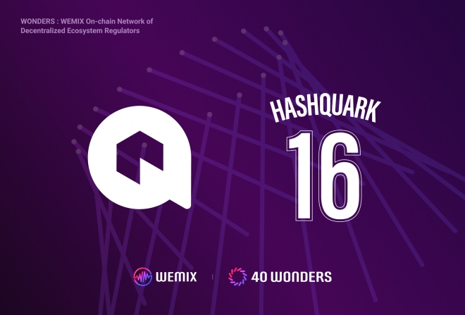 위메이드(대표 장현국)의 블록체인 메인넷 위믹스3.0의 노드 카운슬 파트너(NCP) ‘40원더스(WONDERS)’에 해시쿼크(HashQuark)가 합류했다. 고유번호는 16번(WO...