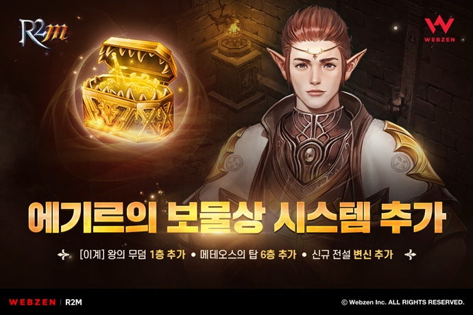 웹젠(대표 김태영)이 모바일 MMORPG 'R2M'의 7월 업데이트를 실시하고 기념 이벤트 3종을 선보인다. 웹젠은 27일 R2M 게임 내 '이계 던전' 등의 콘텐츠를 확장하...