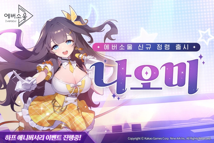 (주)카카오게임즈(대표 조계현)는 20일, 나인아크(대표 이건)가 개발한 모바일 수집형 RPG '에버소울'에 인간형 정령 '나오미'를 비롯한 신규 콘텐츠를 업데이트...