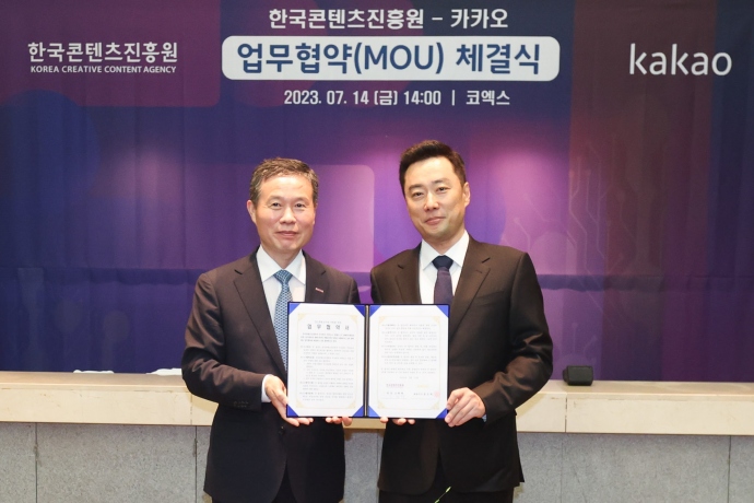 카카오(대표이사 홍은택)가 한국콘텐츠진흥원(원장 조현래, 이하 콘진원)과 콘텐츠 IP 산업 동반 성장을 위한 업무협약을 체결했다고 17일 밝혔다. 협약식은 지...