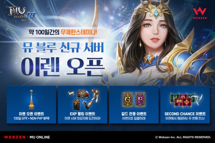 웹젠(대표 김태영)의 PC MMORPG ‘뮤 온라인’에서 뮤 블루 신규 서버 ‘이렌’ 오픈을 기념해 다양한 이벤트를 진행한다. 사전에 ‘이렌’ 전용 스피드 서버를 ...