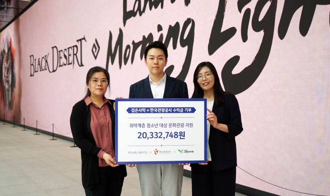 펄어비스(대표 허진영)가 한국관광공사와 협업한 검은사막 ‘아침의 나라’ 팝업스토어 굿즈 수익금 전액 약 2천만 원을 기부했다고 25일 밝혔다. 기부금은 사단...