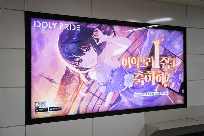 네오위즈가 서비스 중인 모바일게임 '아이돌리 프라이드'의 서비스 1주년을 기념한 옥외 광고가 게재됐다. 이 옥외 광고는 '아이돌리 프라이드'의 유저들이 국내...