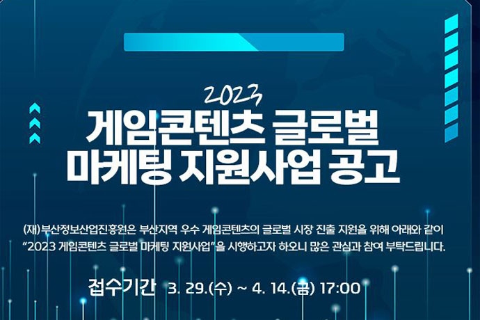 부산시(시장 박형준)와 부산정보산업진흥원(원장 정문섭)은 부산 지역 우수 게임콘텐츠의 글로벌 시장 진출 지원을 위해 3월 29일부터 4월 14일까지「2023 게임...