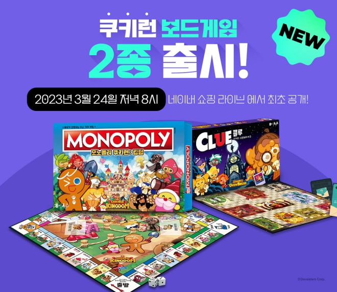 데브시스터즈(공동대표 이지훈, 김종흔)가 보드게임 전문 유통기업 아스모디코리아와 손잡고 쿠키런 IP 기반의 보드게임 '모노폴리 쿠키런: 킹덤'과 '클루 쿠키...