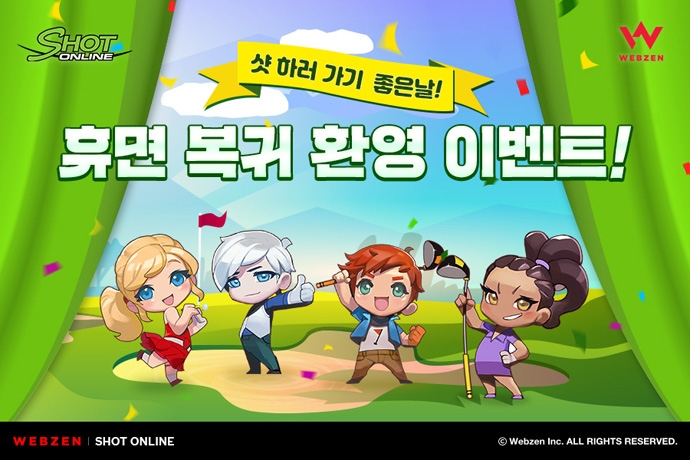 웹젠(대표 김태영)의 PC 온라인 골프게임 '샷온라인'에서 대규모 휴면 계정 복귀 이벤트를 실시한다. 웹젠은 내일(3월 9일)부터 오는 22일까지 약 2주간 '샷온라...